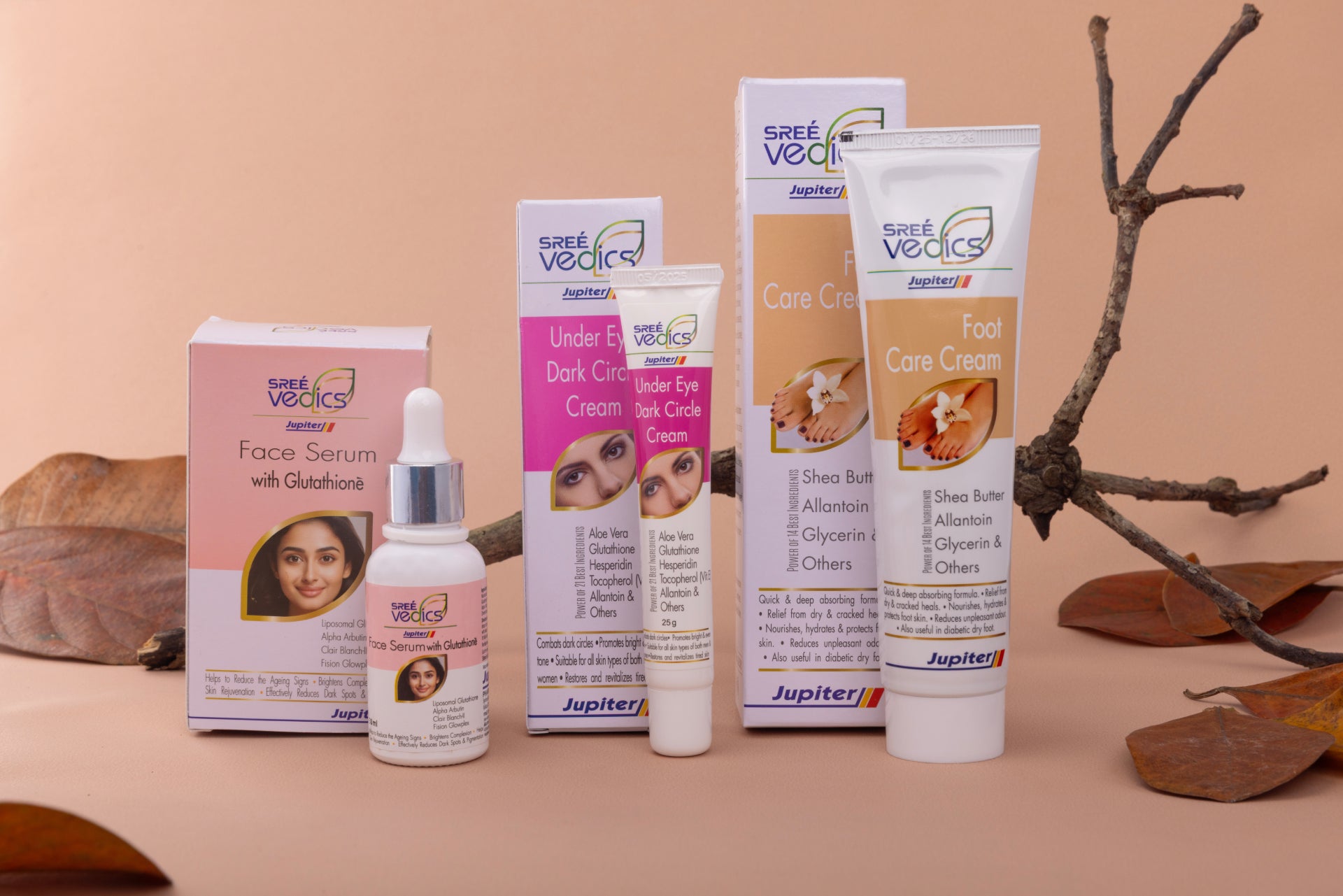 Sree Vedics Brightening Serum is designed to fade dark spots, fight UV damage, and improve skin texture for a radiant, even complexion. Powered by the brilliance of Liposomal Glutathione, it absorbs 64x better than regular Glutathione for faster skin brightening.